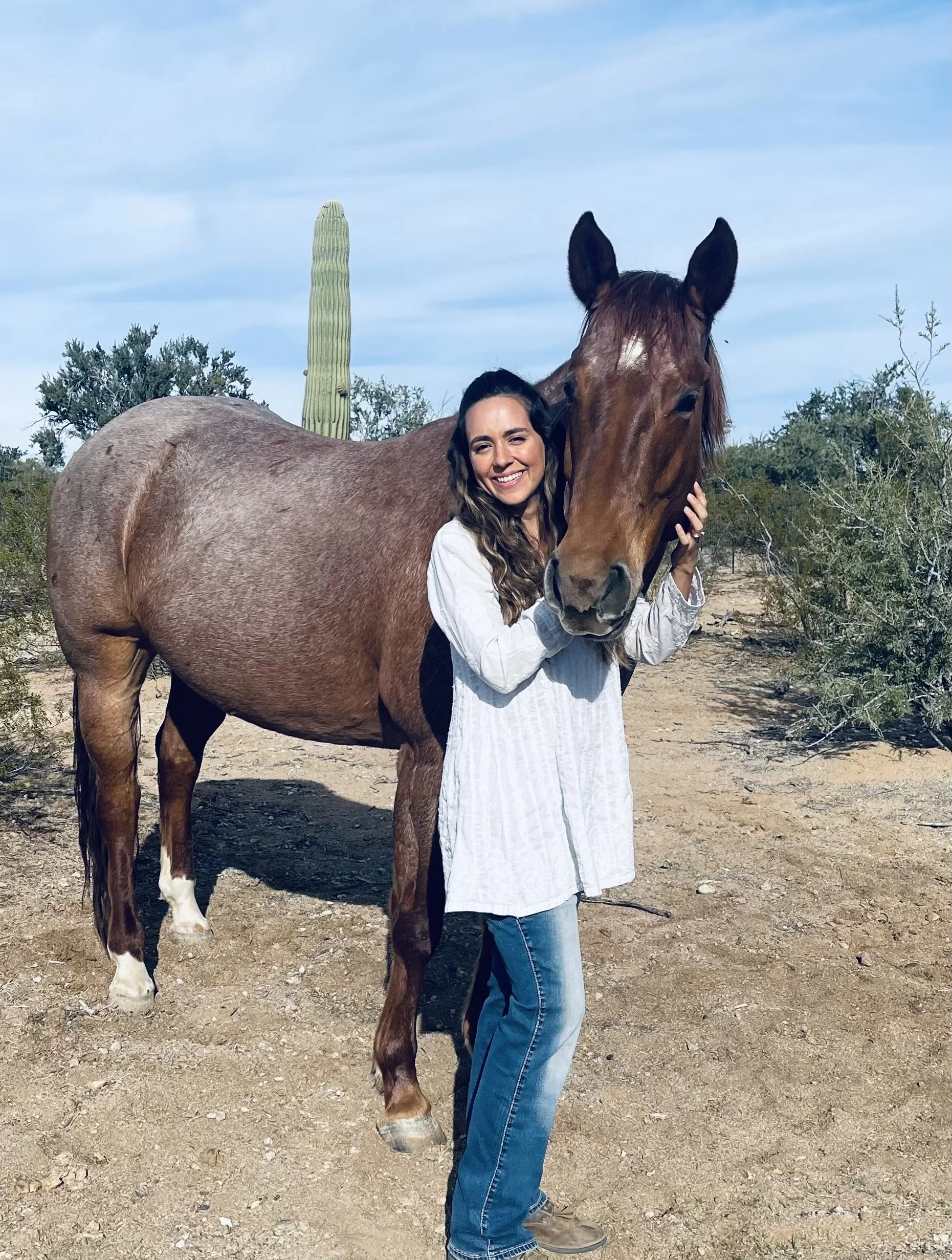 I graduated college from NAU with an Education degree and began teaching 4th grade in 2017. After a few years as an educator I recognized my passion focused more on the emotional well-being of my students, so I made a career change and worked as a Behavioral Health care provider on an equine therapy ranch. Supporting clients of all ages and their families alongside horses, goats, pigs, and donkeys was where I got to see my love of humans and appreciation of animals meet.